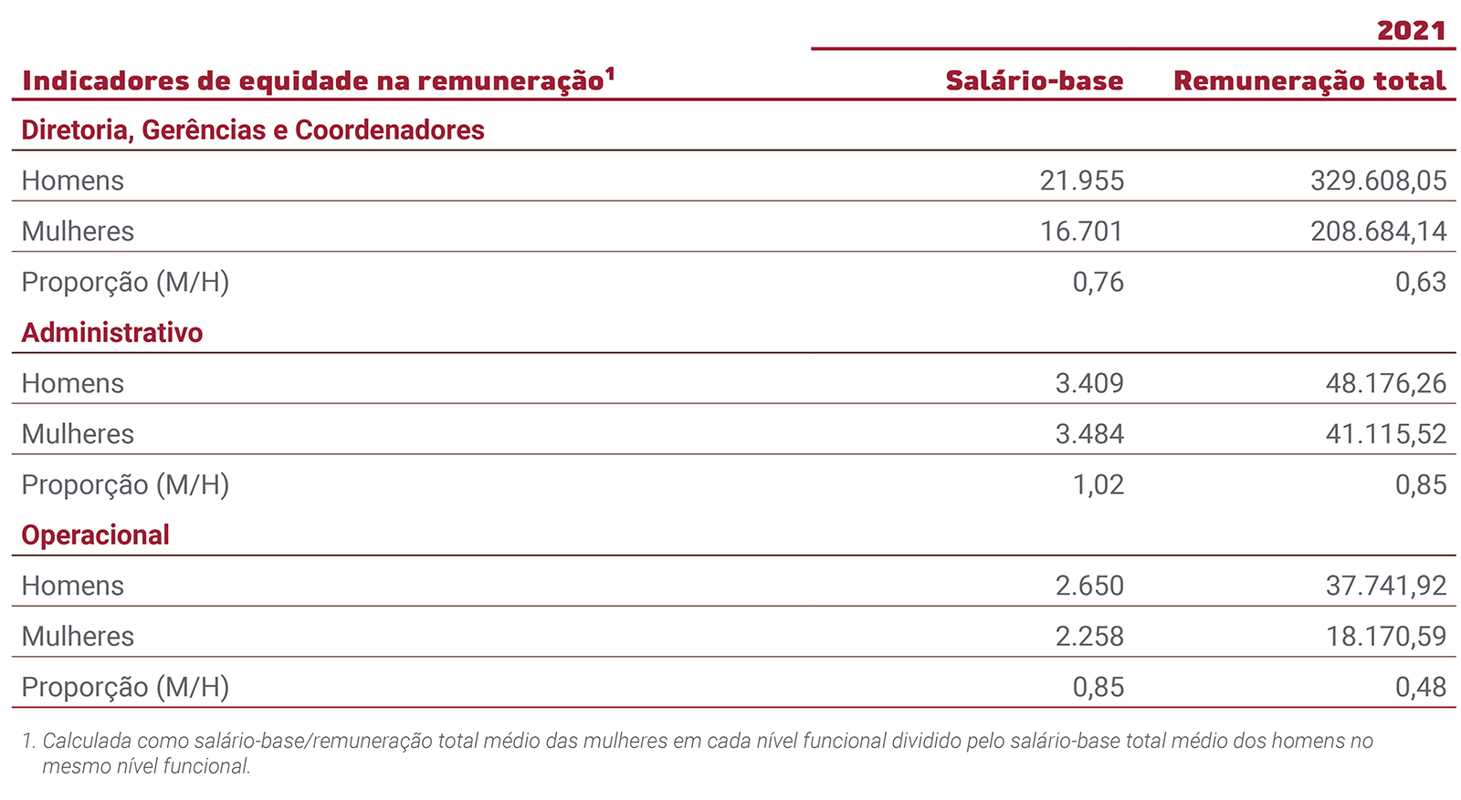 Proporção entre o salário-base e a remuneração recebidos pelas mulheres e aqueles recebidos pelos homens 405-2